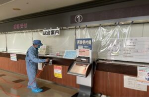 施工箇所:感染病棟、コロナ病棟、外来病棟、全EV、職員更衣室