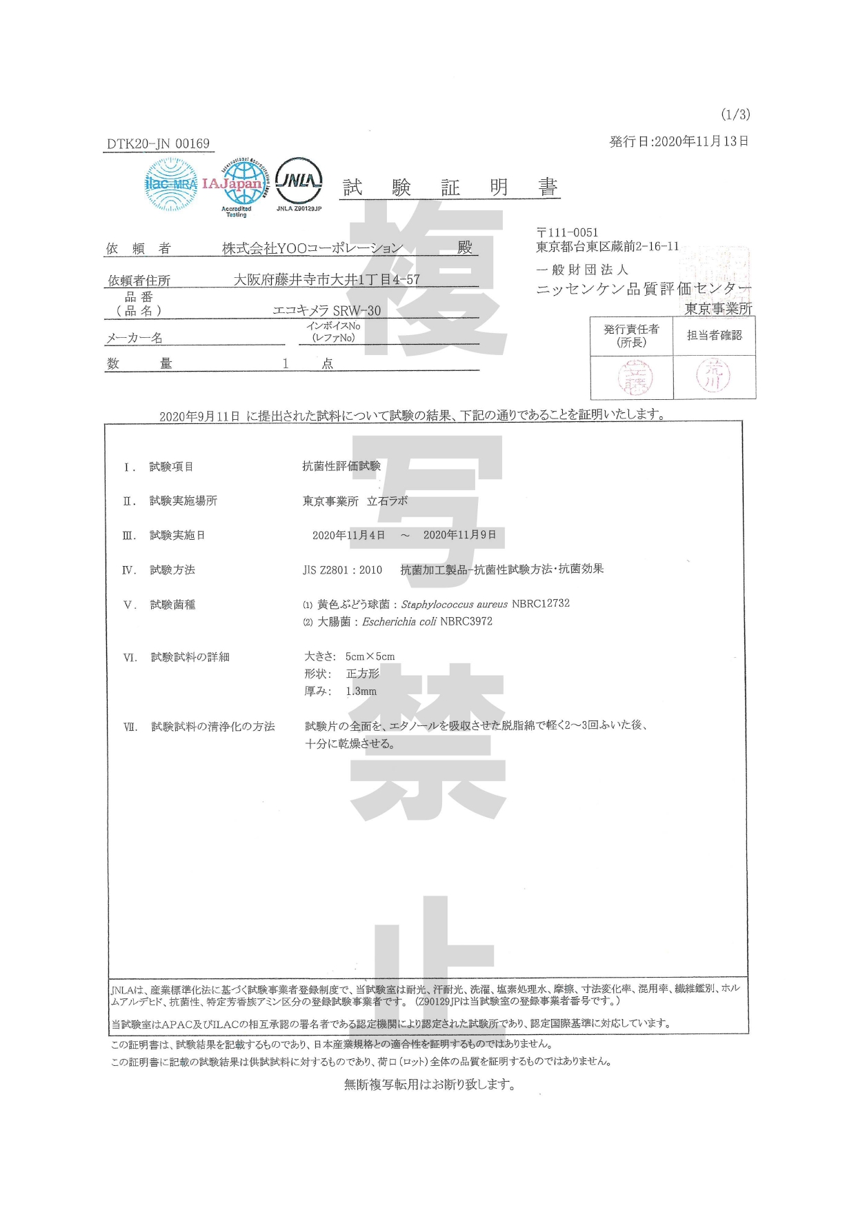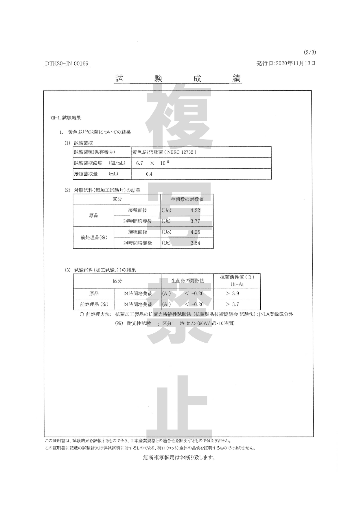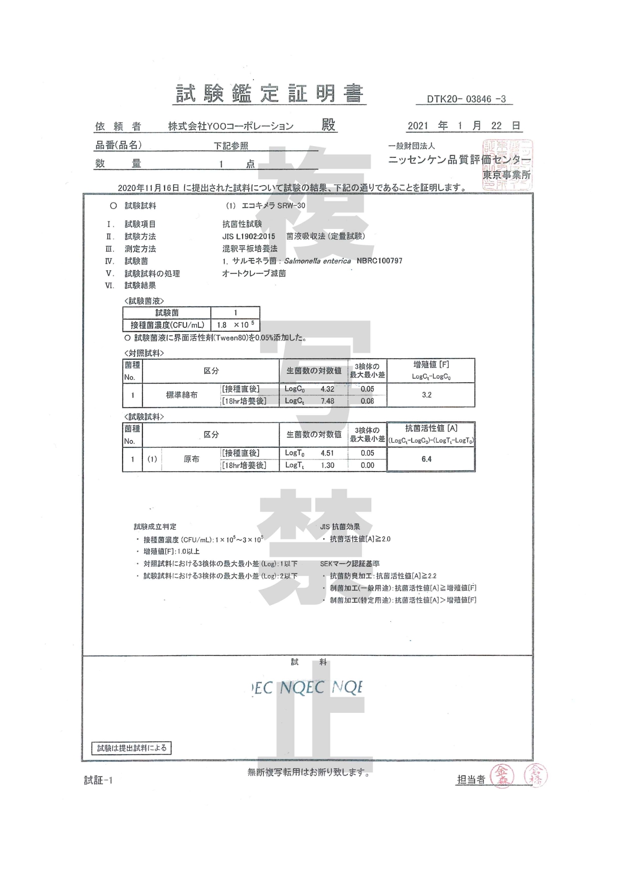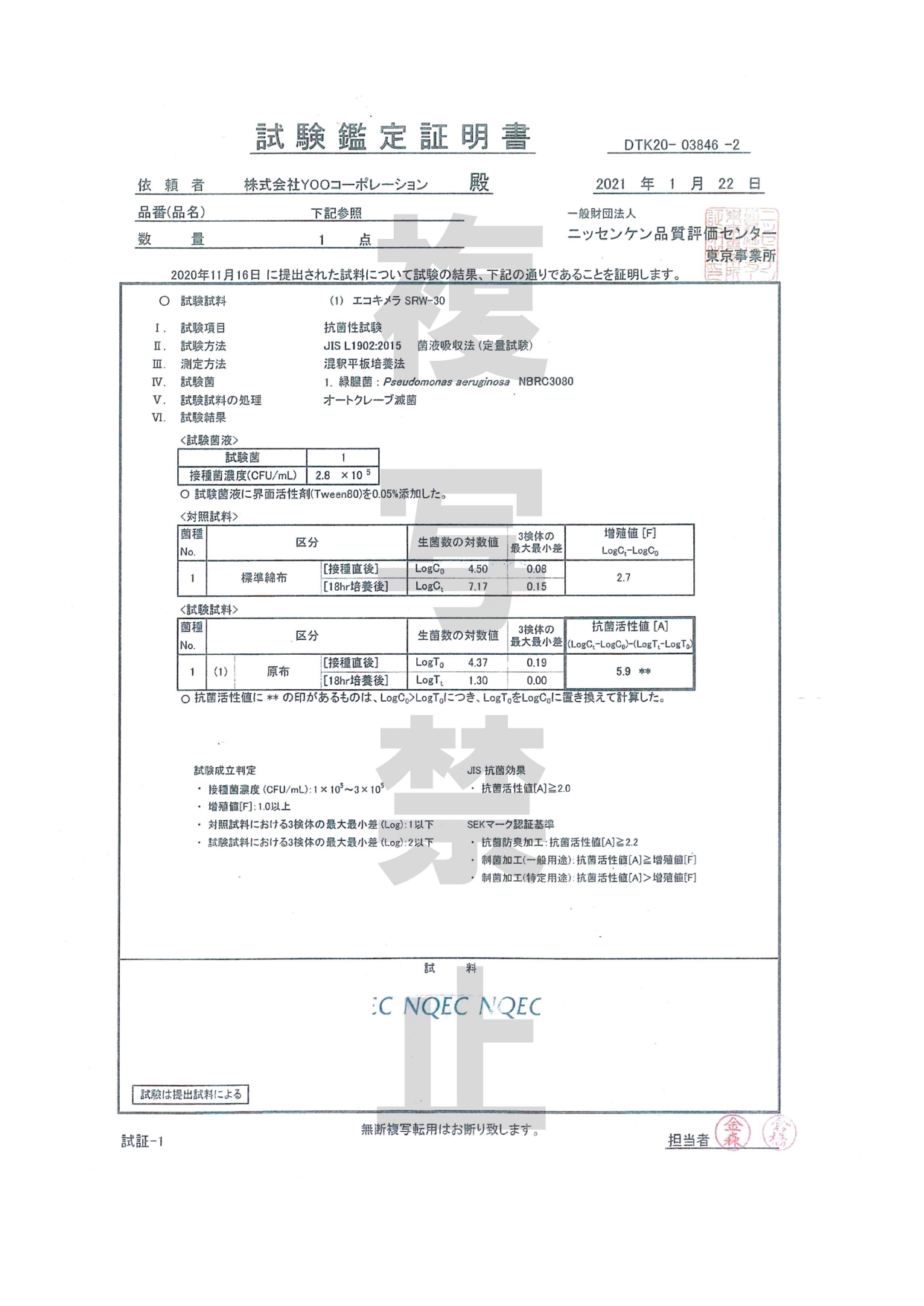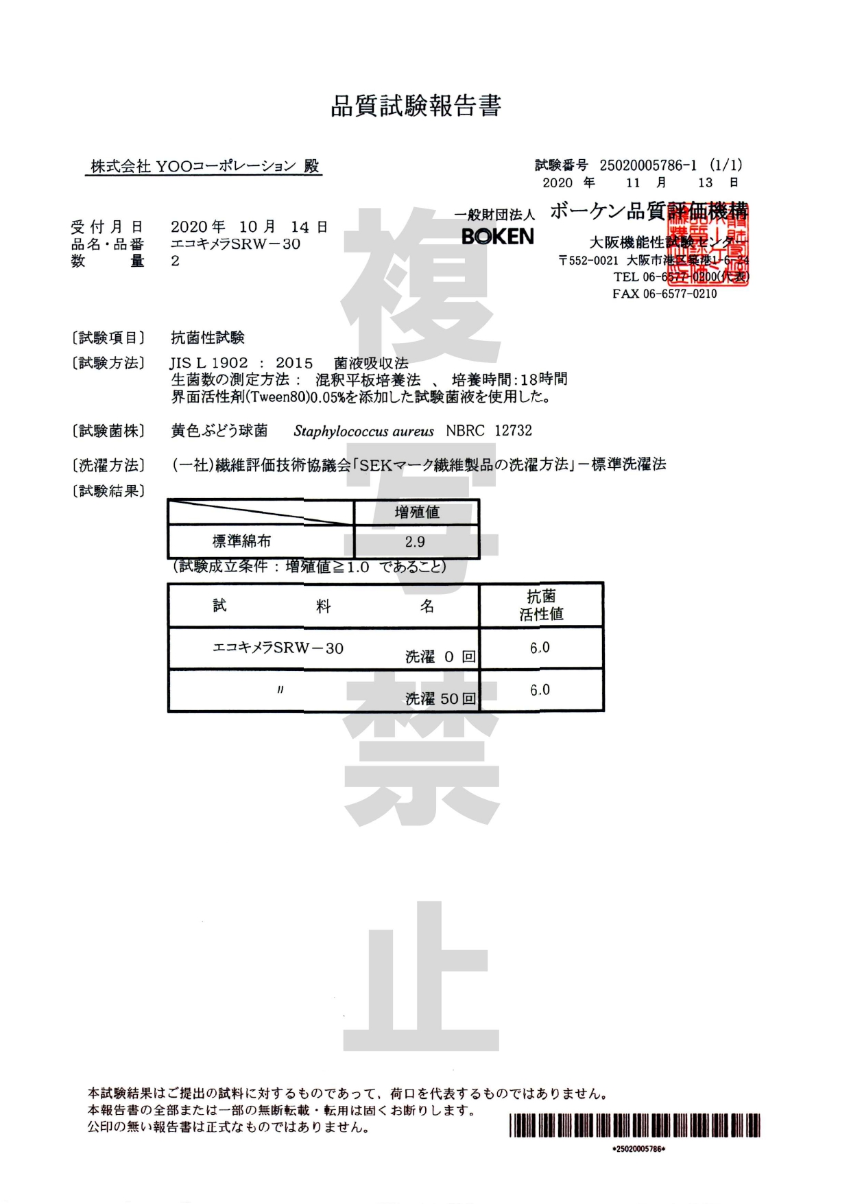 抗菌性試験 耐洗濯性