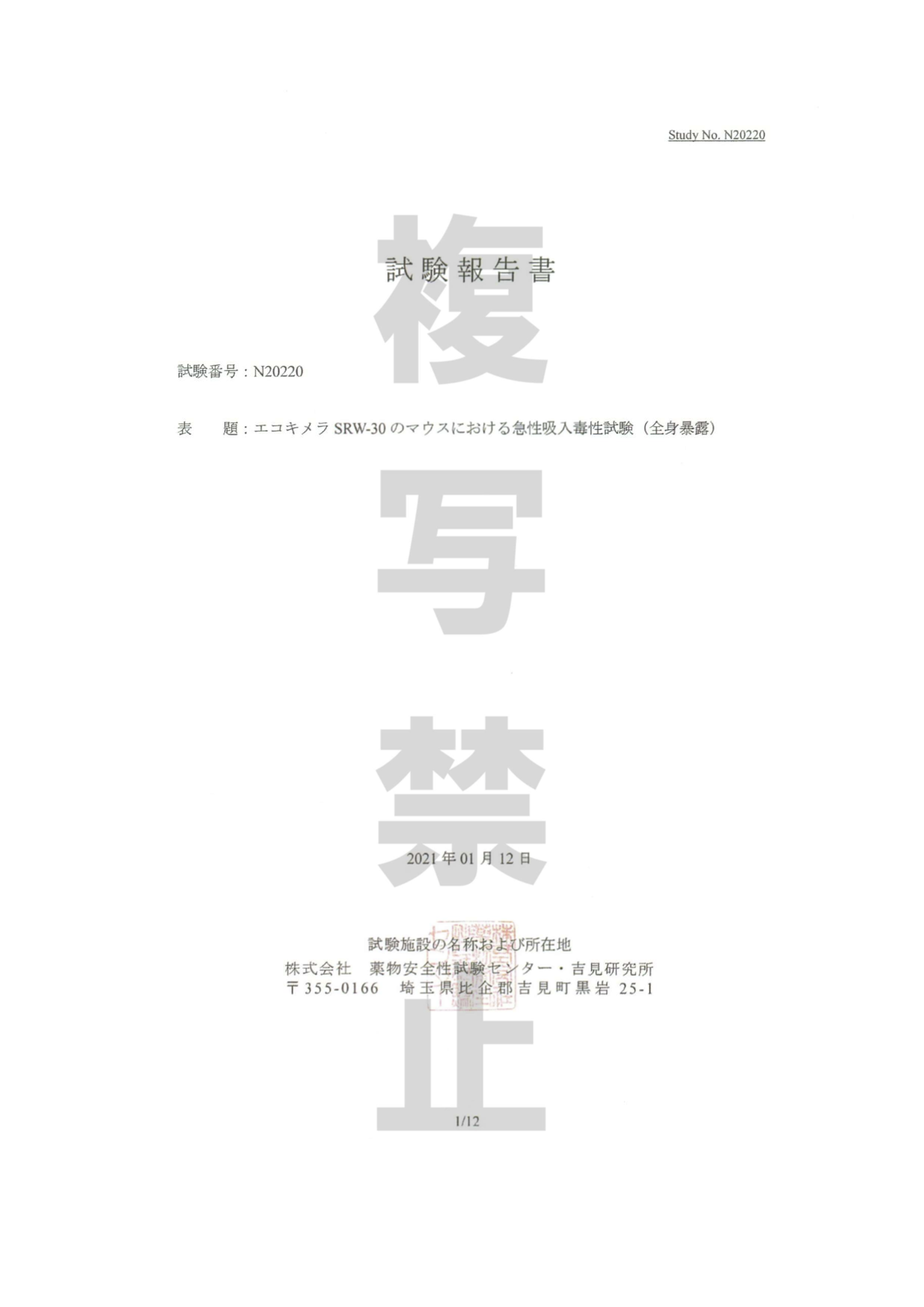急性吸入毒性試験