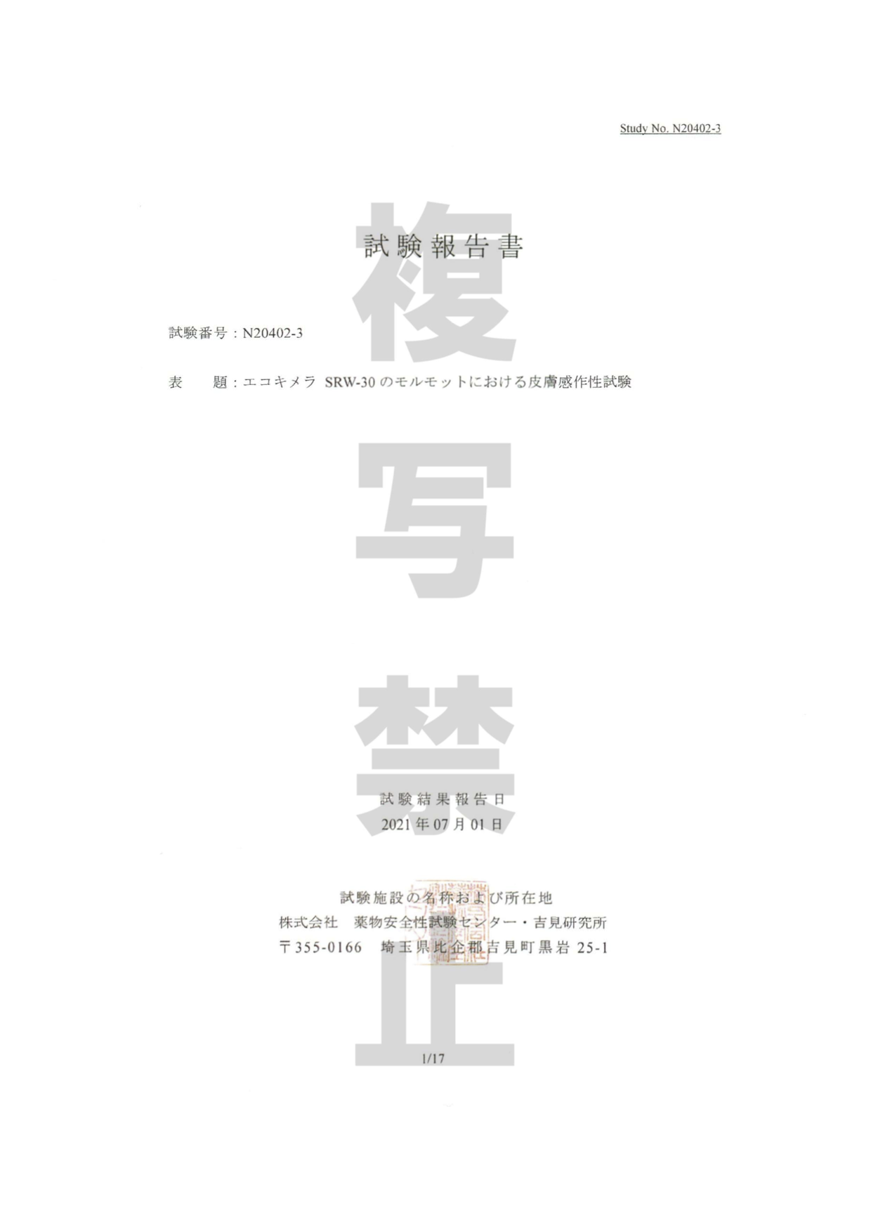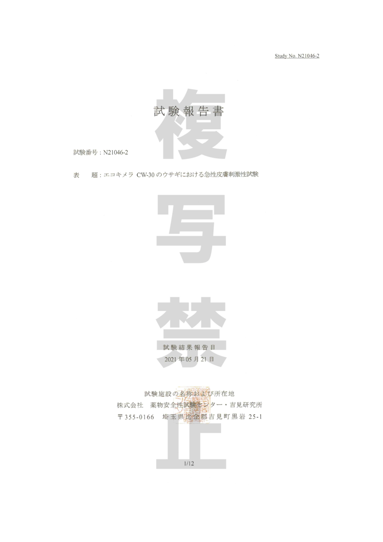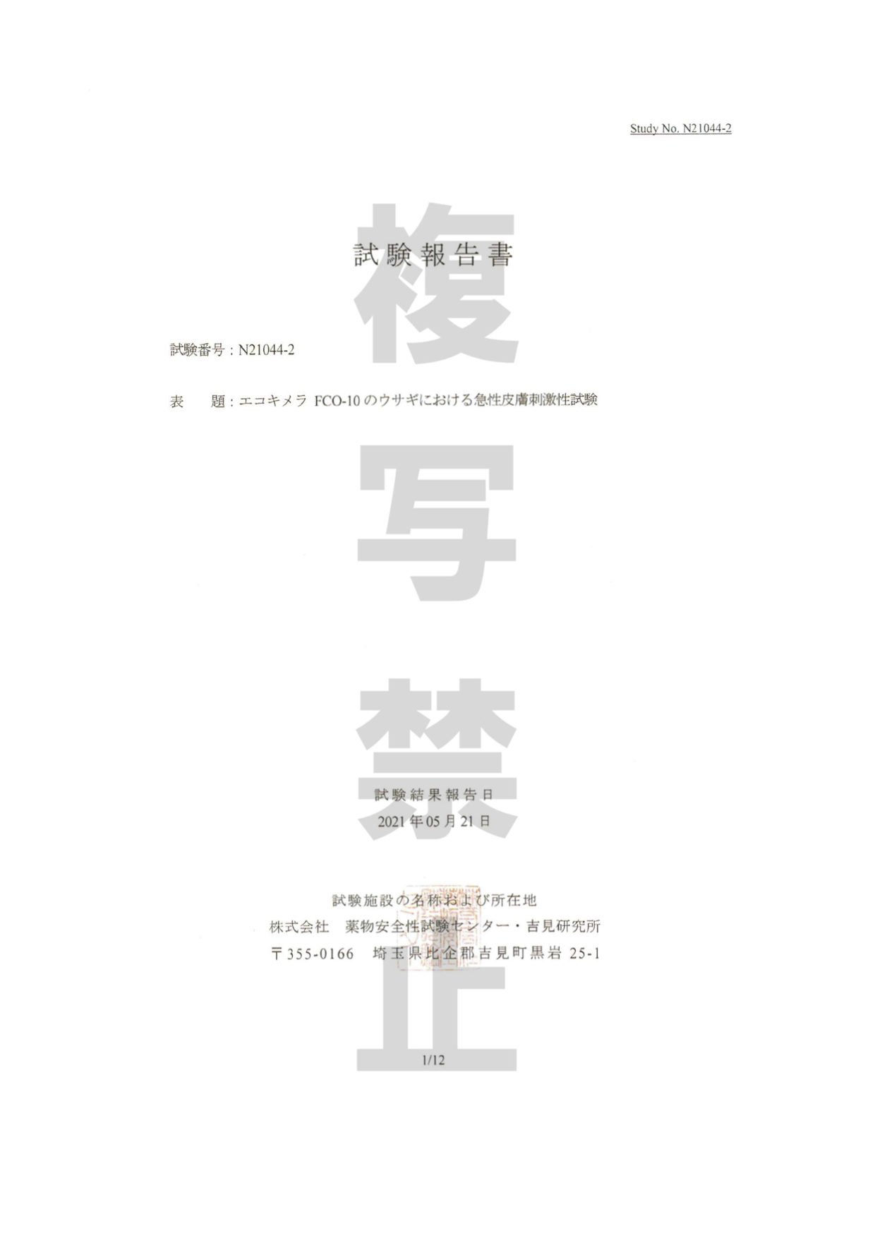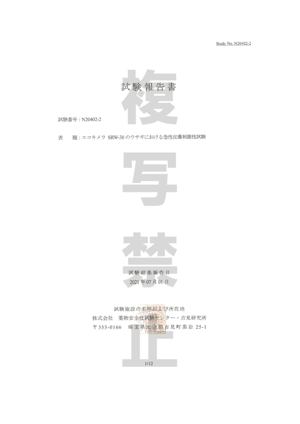 急性皮膚刺激性試験