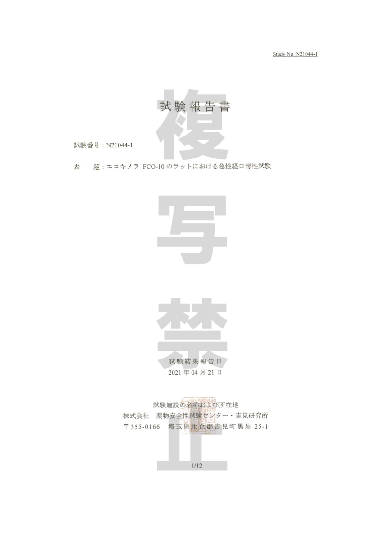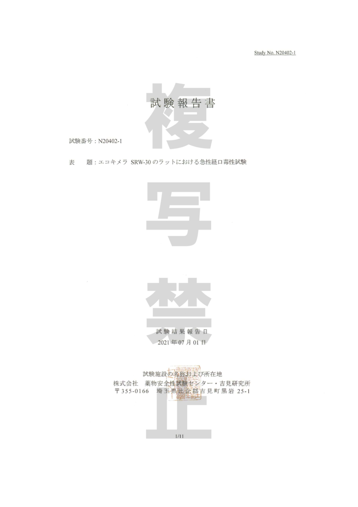 急性経口毒性試験