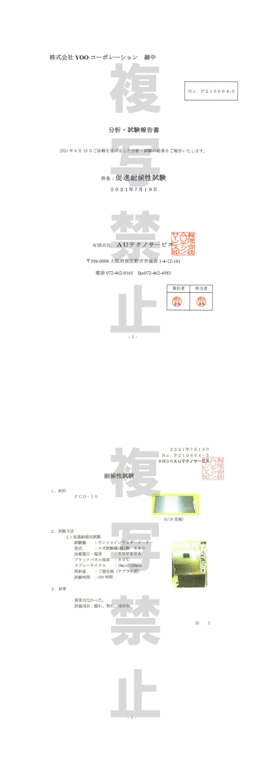促進耐候性試験