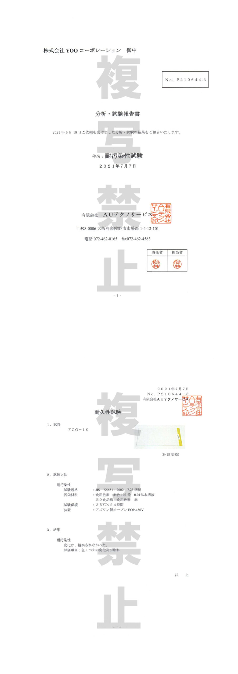 耐汚染性試験