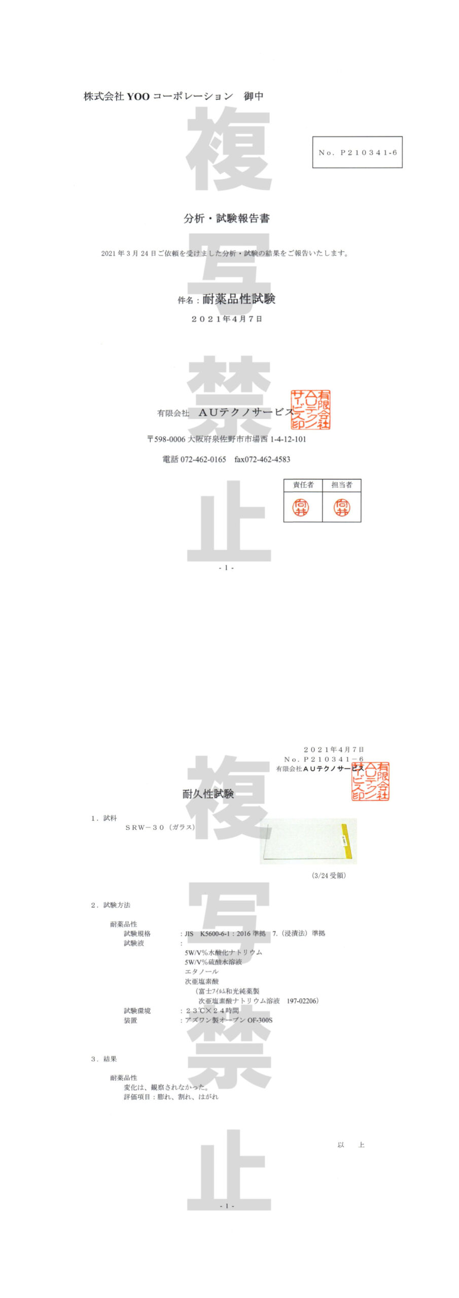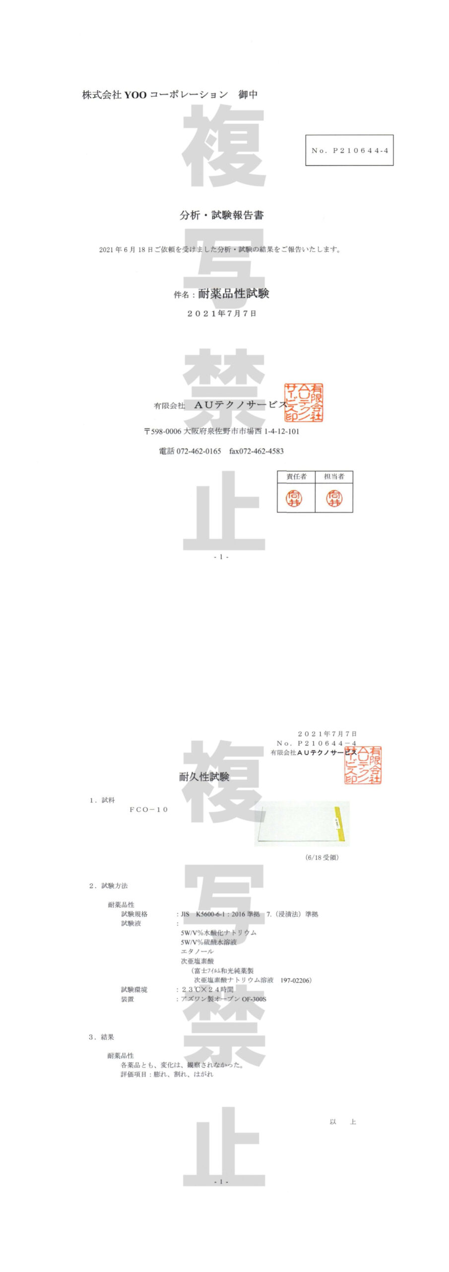 耐薬品性試験