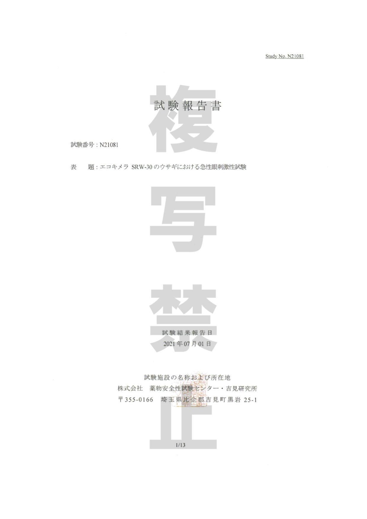 急性眼刺激性試験