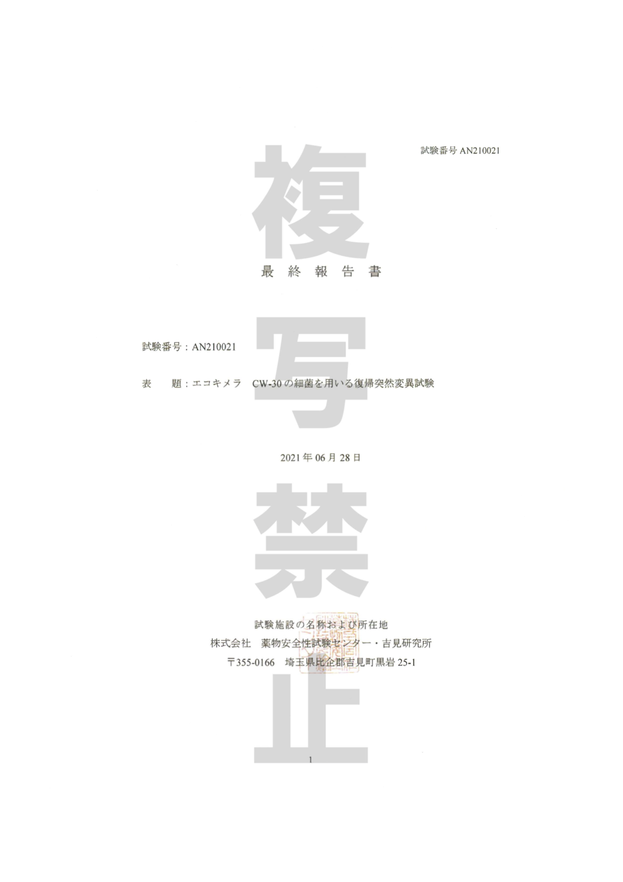 突然復帰変異試験