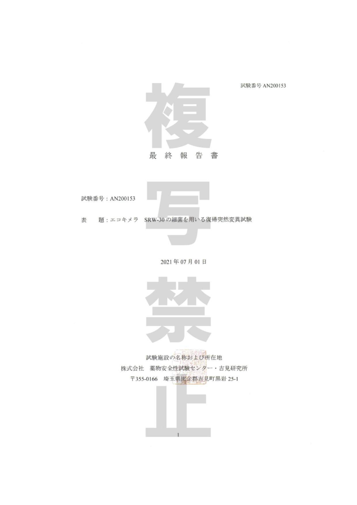 試験機関名